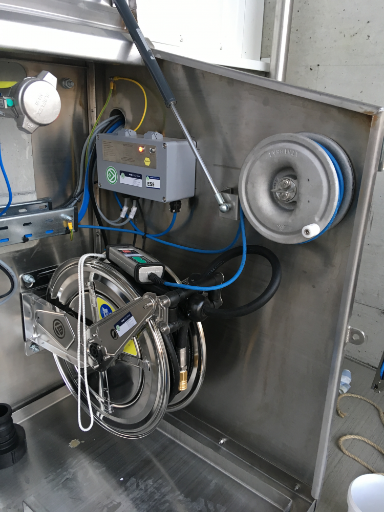 Von Vorteil ist dabei die Reduzierung des Auffangvolumens nach dem Wassserhaushaltsgesetz (WHG), welches im Regelfall so groß wie die angelieferte Menge ist. Durch betätigen des Not-Aus- Schalters oder der unterlassenen Betätigung der Aufmerksamkeitstaste (Totmannprinzip), wird die Auslaufzeit auf maximal 45 Sekunden beschränkt. Hierdurch kann das Auffangvolumen drastisch reduziert werden, da lediglich die in dieser Zeit auslaufende Menge sicher aufgefangen werden muss.